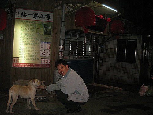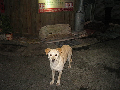 牠是象山流浪狗妞妞,在2007年12月16日晚間,又出現在象山第一站門口.今天台中縣慈龍寺住持常露上人蒞臨象山第一站,給了我們許多寶貴的開示.期間,淑芬提到妞妞咬豬肉石的故事,常露上人及在場師父都笑開了.話說,一枝一葉總關情,鏡花水面皆文章.妞妞啊,妞妞!你給了我們很多的笑聲和快樂,謝謝喲!