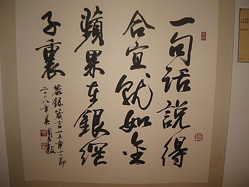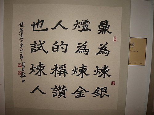 名書法家周良敦的聖經金句書法展 於十二月十三日至二十五日 在台中市文化局第一展覽室展開 十二月十三日舉行開幕式當天 來至全省各地的朋友與教友聚集一堂 祝賀周老師展出成功 由右至左為前豐原高中校長張自強 台灣彩券公司總經理黃志宜 書法家周良敦 象山第一站陳淑芬
