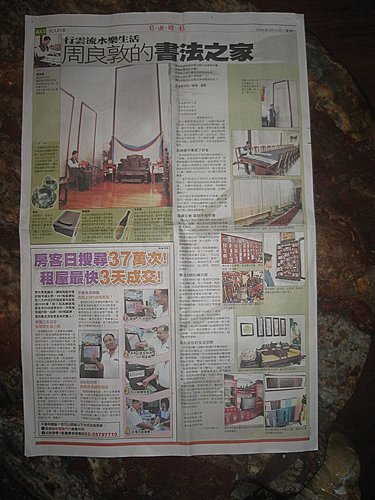 2008年9月20日 自由時報報導書法家周良敦的家 他家美麗實用的圓形鹽燈 連台中市長胡志強伉儷都稱讚喔