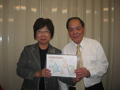 蔣冠峰秘書長代表致贈齊怡的畫作給高惠宇 恭喜她榮任央廣董事長