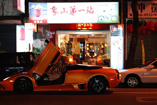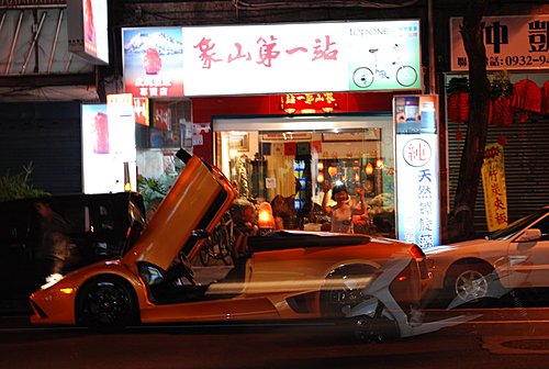 9月1日晚間,位於台北市莊敬路215號的象山第一站前,停了一輛拉風的藍寶堅尼<Lamborghini>跑車.帥氣又年輕的車主大方地與象山第一站陳淑芬分享他的"蠻牛"經驗: