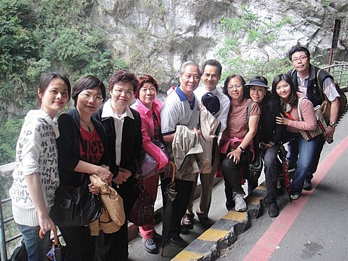 准提新境心靈工坊的成員Sada、陸慧娥,與友人詹秀蓉母女、慧松伉儷與子媳、陳淑芬等,在世界級的太魯閣國家公園,參觀大自然的「鬼斧神工」作品。