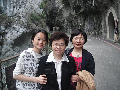 2010年3月22日,享譽國際的書法家詹秀蓉(中)與女兒江美美(左)、友人陳淑芬(右),在花蓮太魯閣留影。從峭壁半空中體驗太魯閣峽谷的驚險與絕美,這是難得的體會與感動。