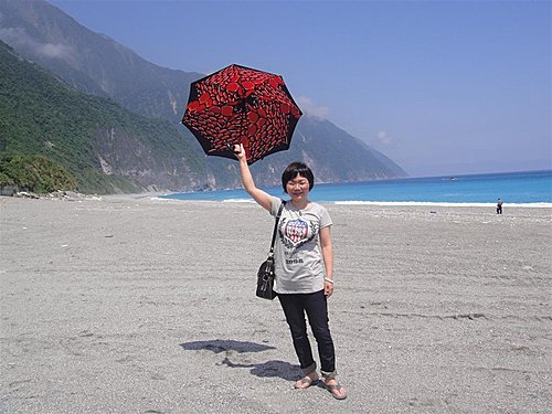 2010年3月23日,花蓮七星潭海邊,讓陳淑芬心情雀耀如手上的花傘。 江美美攝影