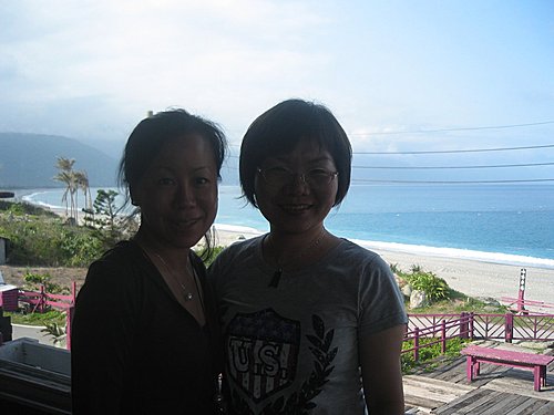 當團友紛紛到海邊撿拾石頭,陳淑芬(右)卻在原野牧場的羊奶咖啡廳遇到一顆心靈鑽石,她是准提新境心靈工坊的陳力瑄Sada(左),Sada是總裁級的「心靈捕手」,我們一見如故,惺惺相惜。 陸慧娥攝影