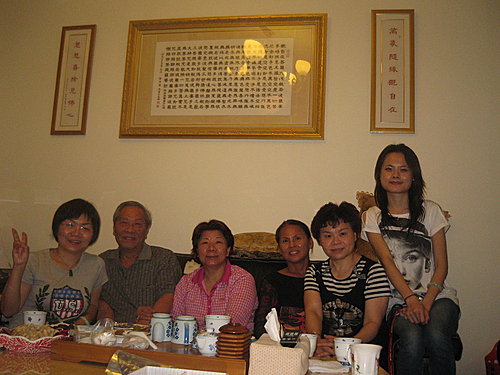 住在花蓮的廖秀鳳(右三)是詹秀蓉的(右二)的小姑,家中蒐藏 許多詹 老師各時期的作品。左起:陳淑芬、慧松伉儷、江美美等,於2010年3月23日 在秀鳳姐家品嘗道地的花蓮扁食和麻薯後,才搭晚間7點半自強號火車回台北,結束兩天難忘的心靈之旅。(回台北時已10點,我們送佛畫家慧松伉儷回家,結束兩天妙不可言的心靈之旅。)