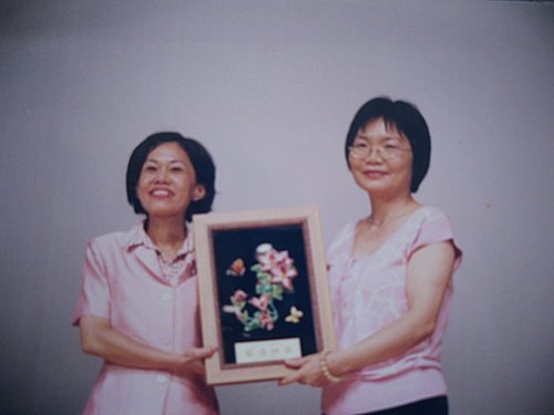2003年7月1日,陳淑芬(右)榮獲第一屆「嘉義之光」,由當時的市長陳麗貞(左)在嘉義市文化中心頒獎。 張富凱攝影