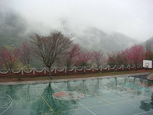 下雨後的南投原鄉小學操場,像天空的鏡子!