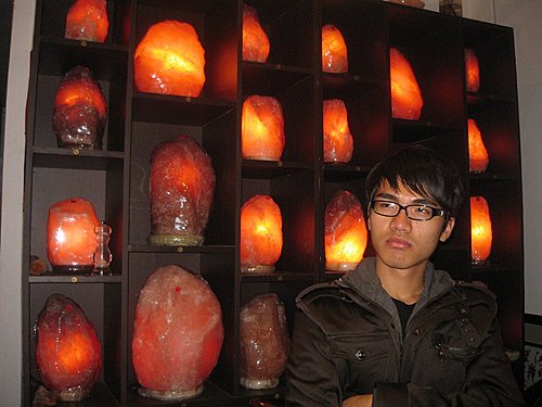 家睿說:「因為一次捐血250cc,兩個月後才能再捐;捐血500cc則3月後再捐。我怕扎針,所以一次捐500cc!」我的孩子,終於到達法定可以捐血的年齡了(滿17),看他坐在鹽燈牆前吸收「能量」,我既欣慰又心疼,並拍下這張照片留念! 陳淑芬攝影