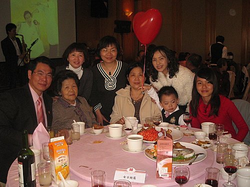 「玫瑰鹽燈」陳淑芬(中)參加二姐嫁女的婚宴,與家人合影。