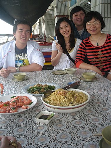 4月30日我們行程的第一站,來到新竹南寮漁港,在魚港的海鮮餐廳,我們吹海風、看漁船入港、品嘗新鮮海產。由右至左為:陳淑芬、陳佩玉、蔡佳蓓與江望平! 蔡明哲攝影