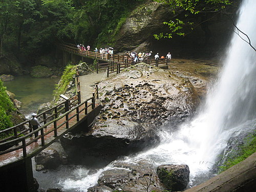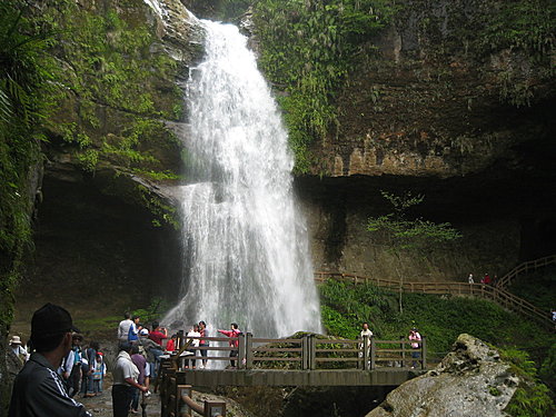 松瀧岩瀑布,亦稱烏松瀑布,瀑布兩旁各有一石洞,名為水濂洞。左洞深約8公尺 、高約20公尺 、長約30公尺 ,右洞則比左洞大一倍。靜坐洞內觀瀑,饒富趣味。至於「天地眼」則為本區最後一個景點,因山壁上凹陷的兩個大洞宛如一雙眼而得名。我在折返「天地眼」時,與賴英照大法官擦身而過,聽到遊客竊竊私語說:「賴英照本人比電視上年輕多了!」 陳淑芬攝影