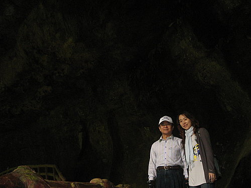 松瀧岩瀑布旁測的大石窟,幽靜似神仙居所,像極了瑞里的蝙蝠洞。名書法家周良敦與許美姿伉儷,來此一遊找尋創作靈感。 陳淑芬攝影