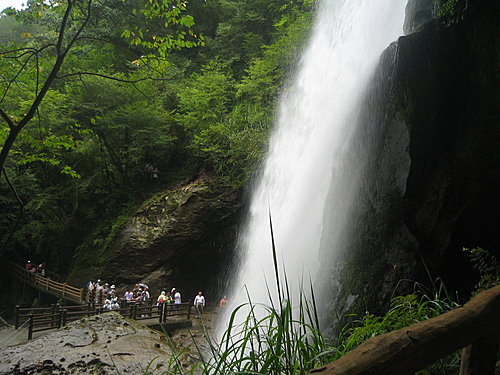 松瀧岩上,數十餘尺高的水瀑沖積而下,水花併散,景像綺麗。瀑前5米的天橋,為負離子SPA觀景最佳地點。 陳淑芬攝影