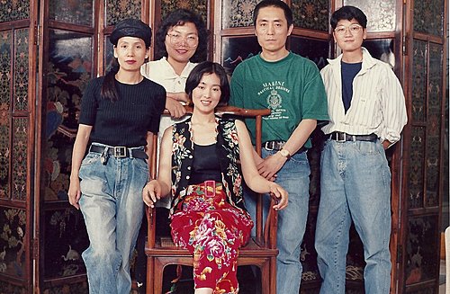 1992年,剛以《秋菊打官司》榮獲第49屆威尼斯國際電影節最佳女主角獎的鞏俐(前),應當時的美華報導副總編輯陳淑芬(後排右)之邀,前來香港拍攝美華報導雜誌封面。為鞏俐掌鏡的,是她當時的導演男友張藝謀(後排中)。與此同時,張藝謀也以《秋菊打官司》榮獲威尼斯電影節最高榮譽「金獅獎」。