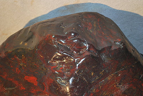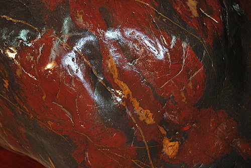 雞血石為朱砂(硫化汞)渗透到高嶺石,在地形石之中而形成,這樣兩者交融、共生的天然寶石,國內外是極為罕見的。