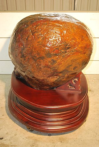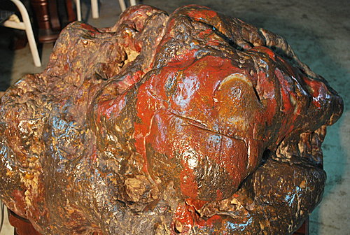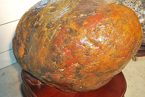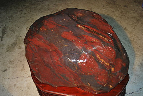 象山第一站所蒐藏的三江雞血石,形似公的三角蟾蜍,鮮紅似血,是石中極品!長80cm 寬120cm 高45cm 重量約400kg