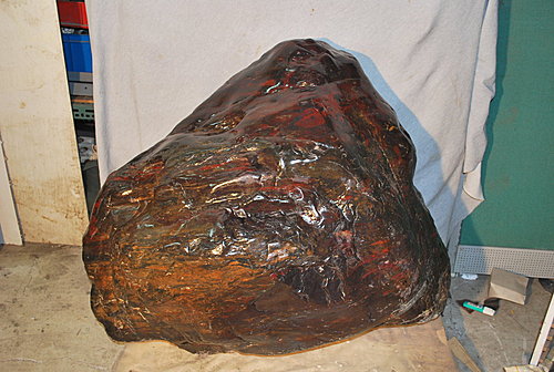 這是彌勒佛雞血石,黑紅相間,是傳說中的<黑寶>。 長65cm寬110cm高90cm重量約600kg