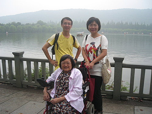 玫瑰鹽燈陳淑芬與青輔會李湘華、導遊,在杭州西湖。