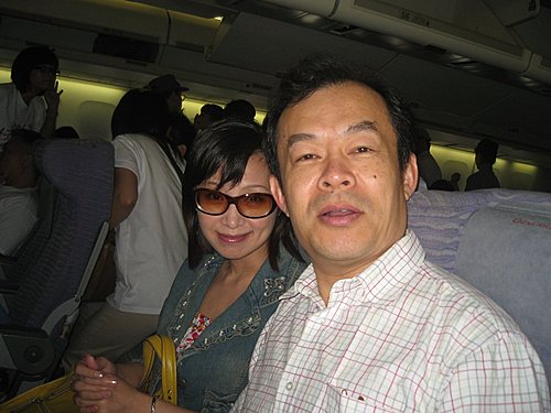 2010年9月9日,台灣身障團體世博參訪團,搭華航早上9點的班機直飛上海浦東機場。陳淑芬的機位就在孫效智教授旁邊,當時,就覺得這位留徳的博士對妻子楊玉欣很體貼,這是我在機上位置為他們拍的第一張照片。 陳淑芬攝影