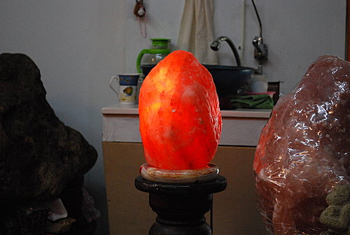 兩億六千萬年前,喜馬拉雅山脈原是一片汪洋大海,經大地震造山運動、地殼擠壓隆起,海洋變高山,海水被太陽蒸發水分後,留下鹽礦埋藏於6百米 深的地底。這些在天地間孕育億萬年的鹽礦,呈現深紅、乳白、橙黃或橘紅等自然色彩的「玫瑰鹽燈」。近年來,隨著歐美日韓上流社會的喜好,「玫瑰鹽燈」已在全世界蔚為流行。(上圖為來自美國的LV姊妹花)