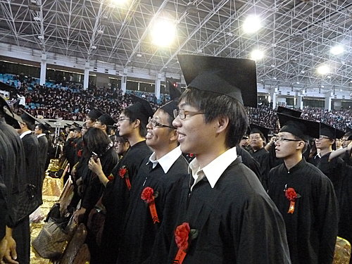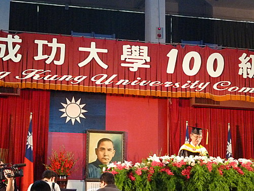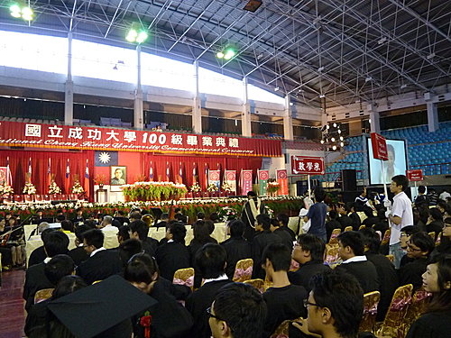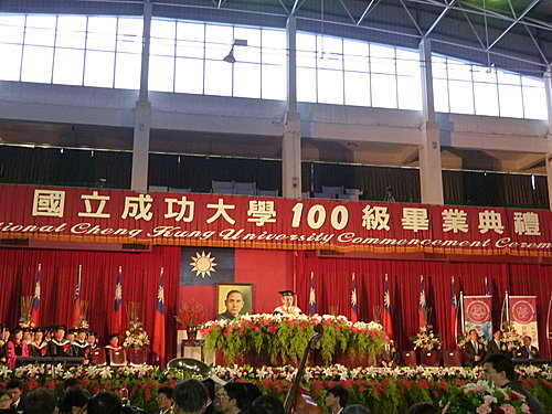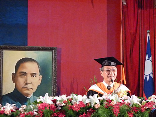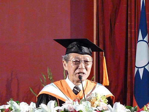 2011年6月4日,成功大學校長黃煌煇教授,給100級畢業生的金玉良言:在人生任何階段,尤其是失意時,一定要為自己找到快樂的方法!!! 玫瑰鹽燈陳淑芬攝影