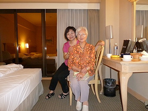 玫瑰鹽燈陳淑芬與親愛的老師媽咪陳淑媛女士,在下榻的嘉義市兆品酒店。陳老師在飯店房內,對淑芬傳道解惑。 劉芳如攝影