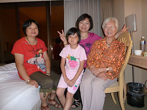 玫瑰鹽燈陳淑芬與陳淑媛老師及好友沈秀霞(左)等,在家鄉的嘉義市兆品酒店過暑假。 劉芳如攝影