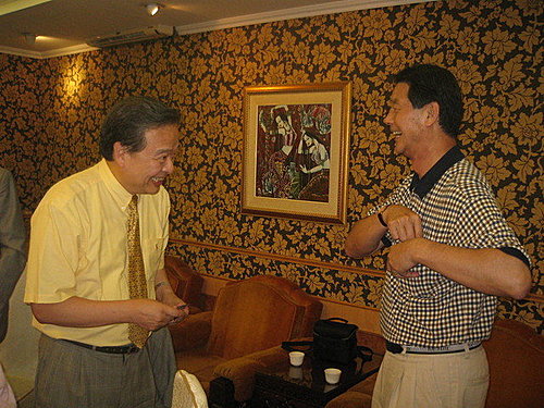「中華文化推廣協會」第一屆第二次會員大會,於2010年8月4日 在台北市政府宴會廳舉行。常務理事朱宗慶、成嘉玲、陳勝福、紀政,與理事汪威江、傅達仁、葉文立、黃光男、李銓、朱延平,以及立委李慶華、前新聞局長邵玉銘、師大圖文傳播系教授劉立行、 鄧麗 君文教基金會執行長鄧長富、白滄沂館長、林錫輝董事長、 陳怡 君執行長、許聰軒董事長伉儷、江瑋玲特助、林志仲經理等與會。 圖為銘傳大學校長李銓(左)與 鄧麗 君文教基金會執行長鄧長富(右)相見歡,當時彼此交換名片情景。陳淑芬攝影