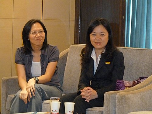 永慶房仲集團董事長孫慶餘,對中華文化推廣協會貢獻甚多。圖為永慶房仲集團董事長孫慶餘秘書(右),與永慶基金會劉芸伊(左)。 陳淑芬攝影
