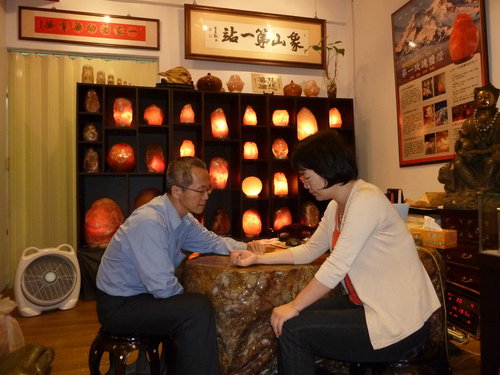 陳乾原醫師(右)於2009年5月26日親訪象山第一站,與玫瑰鹽燈陳淑芬(左)一見如故,倆人結下姐弟之緣!