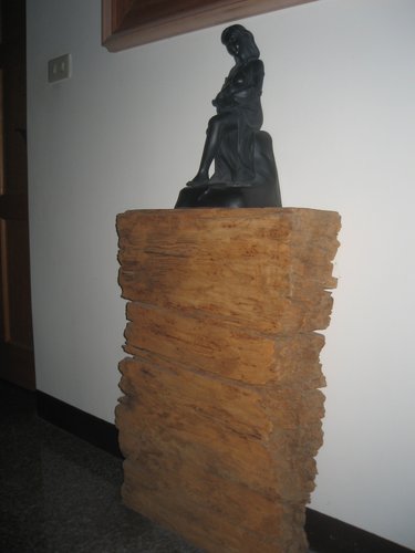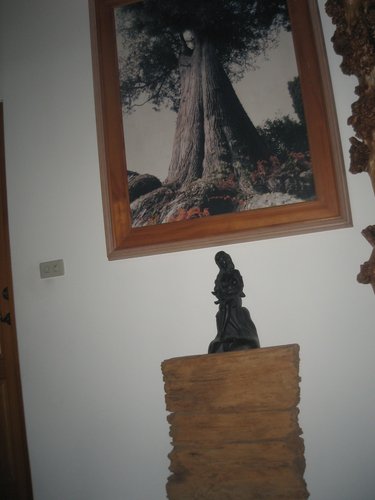 這塊紅檜木,原作為日據時代阿里山鐵路枕木之用,因太長遭丟棄;後輾轉被檜木達人賴水清所蒐藏。據賴水清表示,這塊百年紅檜,成長期應超過千年。除左右邊遭水侵蝕,有一點參差不齊外,硬度與質地一級棒,還隨時會散發出檜木幽香。 陳淑芬攝影