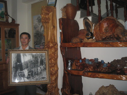 賴水清家住嘉義竹崎山區,學生時代,每天上、下課都必須騎單車與滿載瀰漫芬芳香味的檜木火車競逐,眼睜睜的看著阿里山的台灣國寶檜木一車車的被日本人運回日本享用。因為好奇、有心,所以鑽研檜木的功效,他眼光獨到的將國寶檜木廢料提煉成精油變黃金,其化腐朽為神奇的智慧,堪稱檜木達人。 陳淑芬攝影