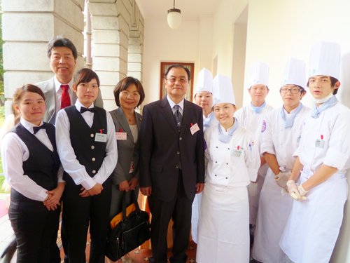 近幾年由中華文化總會舉辦的「新春文薈」,餐點皆是由經國管理暨健康學院所承辦,照片中為玫瑰鹽燈陳淑芬與經國學院董事長蔣初泰、校長邱明源教授(中)與學生們。