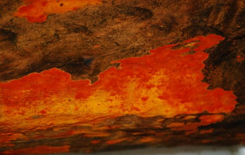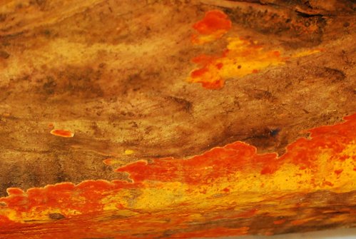 目前市面上炙手可熱的牛樟芝,依栽培方式,可分:椴木栽培法、太空包栽培法、液態栽培法。玫瑰鹽燈陳淑芬親訪樟芝栽培專家,據椴木樟芝業者王先生表示,牛樟芝椴木栽培的子實體,因最接近野生牛樟芝成分,培育成本最貴,成分較為完整;固體栽培(太空包)類子實體次之;菌絲體製(液態栽培)的最次等。椴木樟芝栽培,需1~2年時間,以樟芝菌植入牛樟木,利用菇菌培育技術栽培出子實體。上圖為植菌約1年左右之樟芝,顏色鮮艷美麗。