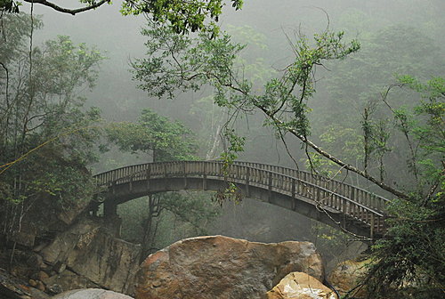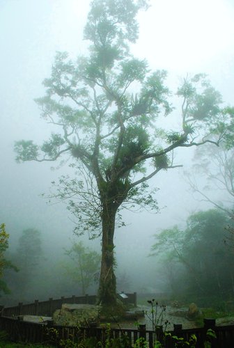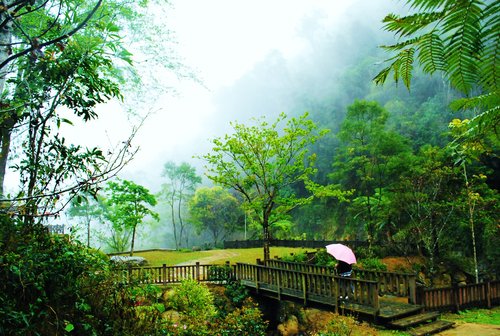 這是玫瑰鹽燈陳淑芬在嘉義縣竹崎鄉水社寮的圓潭瀑布附近,所拍攝到的雨中美景。曾有位當地長者,拿一塊野生牛樟芝讓淑芬品嘗,那味道,真是~~苦啊