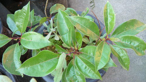 玫瑰鹽燈陳淑芬所捧之盆栽,其中有3棵是牛樟種籽所發的幼苗,業者將其他花草亂植盆內,用以「魚目混珠」,以免名貴樟木幼苗被盜。這樣的牛樟幼苗,需種植幾十年後,才能取椴木復育牛樟芝。