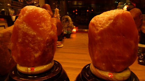 關於鹽燈:兩億六千萬年前,喜馬拉雅山脈原是一片汪洋大海,經造山運動、地殼擠壓隆起,海洋變高山,海水被太陽蒸發水分後,留下鹽礦埋藏於 六百米 深的地底。這些在天地間孕育億萬年的鹽礦,經手工雕琢製成天然燈具,呈現深紅、乳白、橙黃或橘紅、鴿血紅等自然色彩的「玫瑰鹽燈」。近年來,隨著歐美日韓上流社會的喜好,「玫瑰鹽燈」已在全世界蔚為流行。
