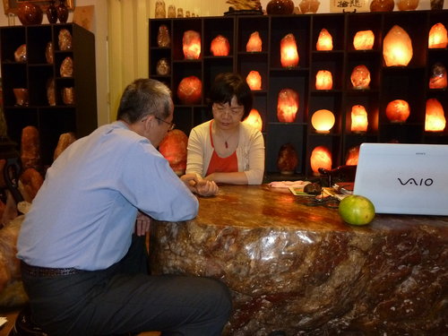 今天(20121227),如原診所的陳乾原醫師到台北醫學大學上博士班的課,順道過來幫我看診(陳醫師擁有中醫與西醫執照,這是去年底他在象山第一站幫我把脈的照片)。陳醫師是鹽燈的愛用者!