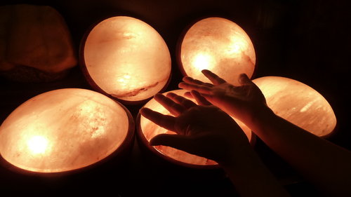 正值更年期的玫瑰鹽燈陳淑芬,晚上一邊看大陸電視劇「三國」、一邊腳踩飛碟鹽燈「腳底按摩」。期間,還把飛碟鹽燈抱在懷裡熱敷腹部、手掌,用鹽燈熱敷以後,喝杯溫開水休息。淑芬使用後的體驗是:睡眠品質改善(比較能進入深層睡眠)、剛開始腳底一直冒汗(醫師認為是促進身體新陳代謝循環)、熱能從腳底慢慢傳導到頭頂(感覺細胞好像活化歡呼).........