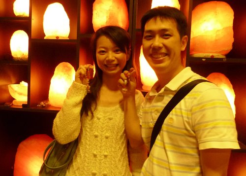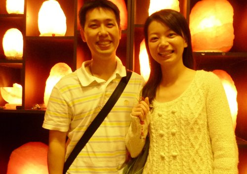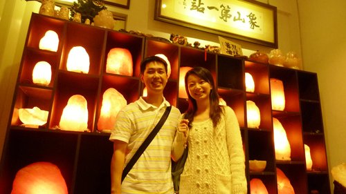 「鹽燈情侶」黃中奕、高慧茹訂婚了,恭喜!2013年1月11日晚間,一對即將訂婚的情侶黃中奕、高慧茹,開車從新竹來到 台北市信義區莊敬路215號 象山第一站,買鹽燈為對方圓一個「鹽緣」!這對俊男美女準新人都在竹科上班,是「玫瑰鹽燈」陳淑芬的部落格讀者。帥氣開朗的黃中奕說:「我和慧茹將於後天(1月13日)訂婚,今天特別來買鹽燈報喜訊,希望淑芬姐為我們祝福!」長相頗有明星臉的慧茹,始終笑咪咪聽我傳授「鹽燈幸福秘訣」。當他們選到兩個滿意鹽燈,慧茹抱著我道別的時候,讓淑芬頗有「嫁女兒」的感覺!(我們才認識不到1小時呢,莫非這就是「鹽緣」?!)