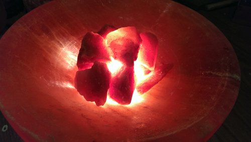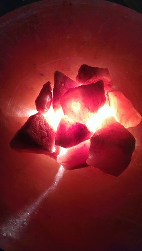 以前,我擺聚寶盆鹽燈之玫瑰鹽塊,一定把它擺得滿滿滿(表示招很多財)。但這次,我在超大聚寶盆鹽燈中,只放幾塊鴿血紅鹽塊,沒想到用手機就能拍出這麼漂亮的照片。這些畫面讓我體悟:心胸要像這個超大聚寶盆,有容量、虛懷若谷。因為氣度決定一個人的高度,當你順逆隨緣、福杯滿溢時,一切也就水到渠成了!