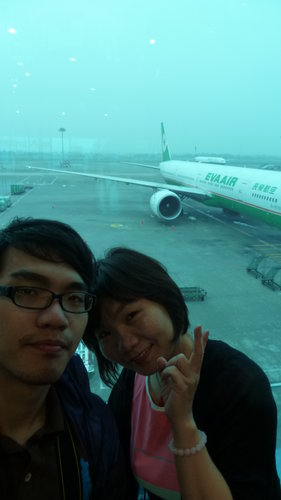 在新加坡樟宜機場候機室等待時,所拍到風雨過後第一架起飛的班機.....一切安全為要,等待是值得的!
