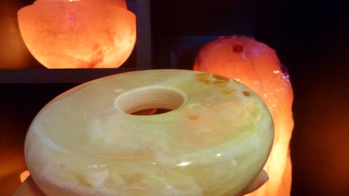 象山第一站所使用的鹽燈青玉底座,堪稱業界之最。漂亮的鹽燈,搭配質美品佳的玉座與安全電線,相得益彰。
